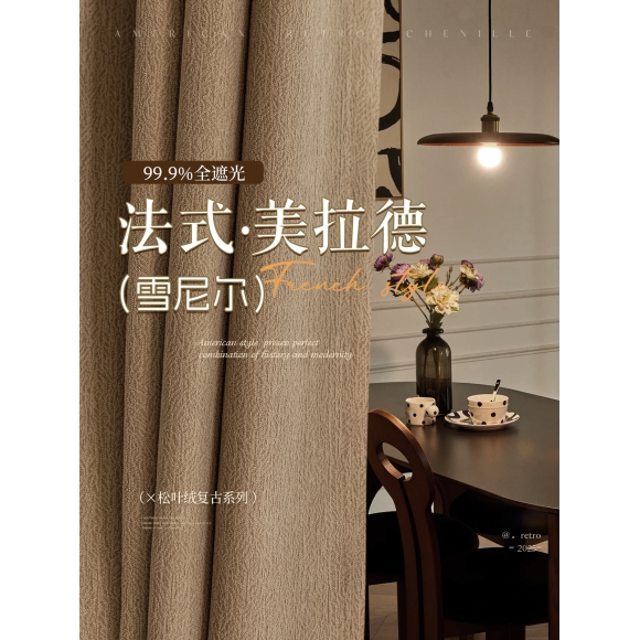 美拉德卧室窗帘遮光法式雪尼尔复古高级感2025新款客厅家用定制
