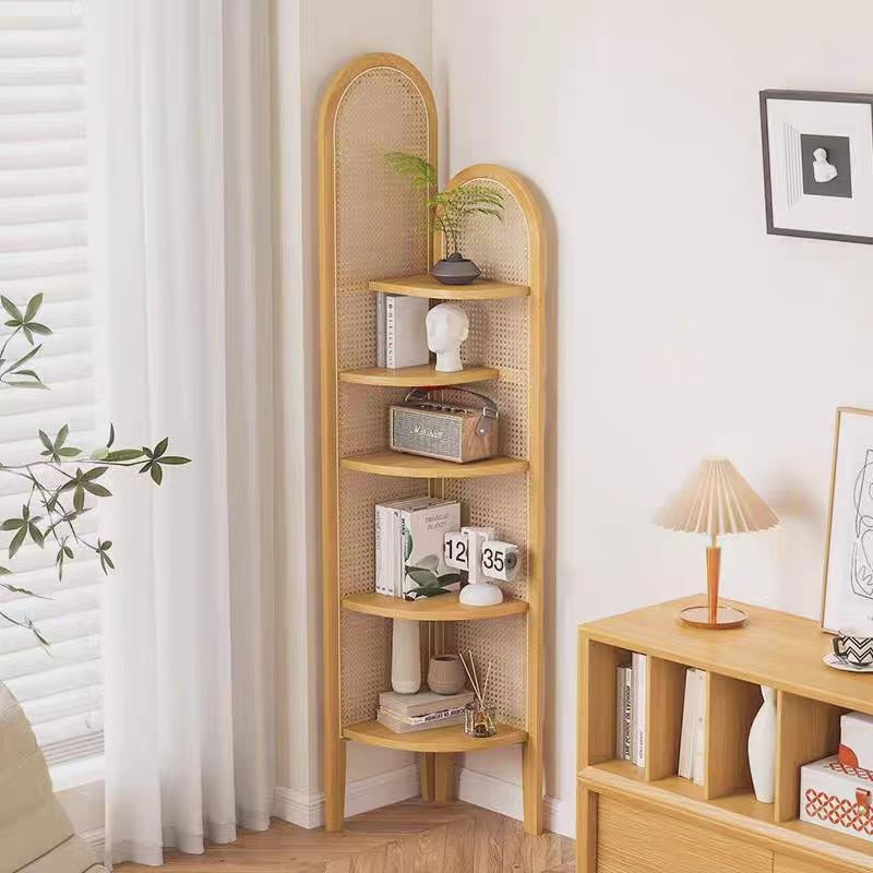 实木藤编转角置物架拐角展示架三角落收纳架陈列架客厅复古风层架