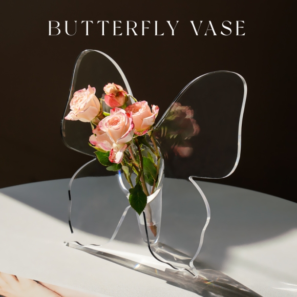 家居小红书亚克力轻奢高级感蝴蝶花瓶创意艺术相框花瓶水培插花器