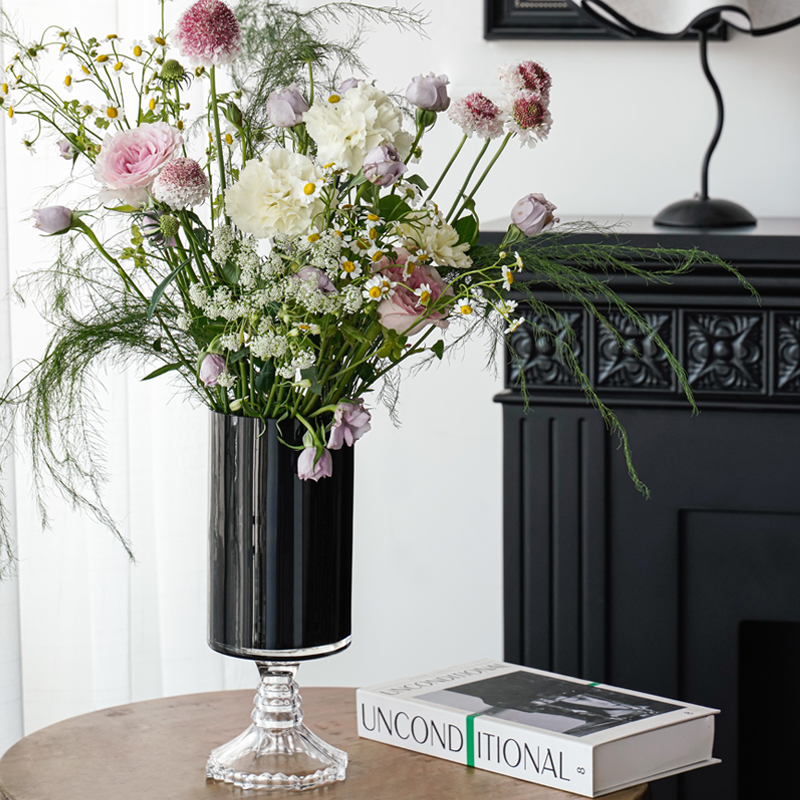 花瓶轻奢高级感客厅摆件插花法式中古高脚绝美玻璃餐桌装饰品摆件