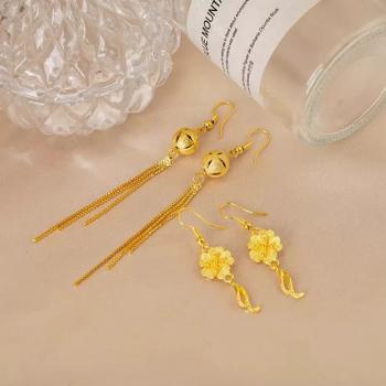 孟加拉赤金花朵流苏耳环镀18K黄金色时尚